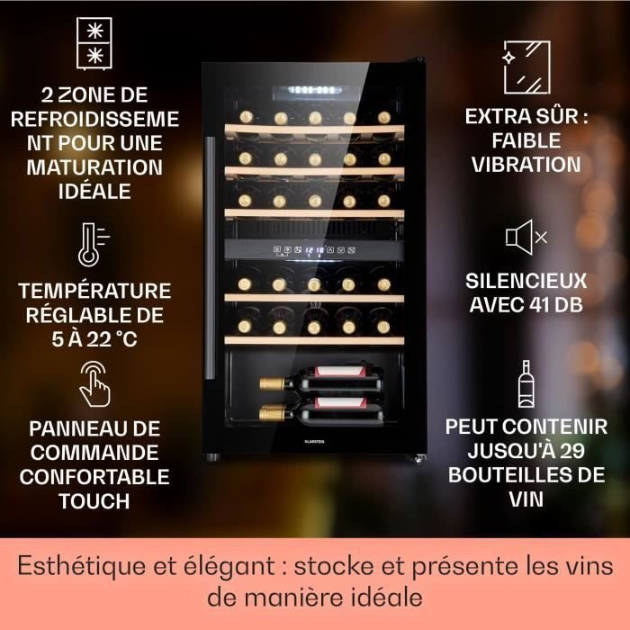 Inicio Frío Vinoteca Vinoteca Klarstein Barossa 29 Duo – 29 botellas – 80 L – 2 zonas – 5 a 22 °C – LED – Negra