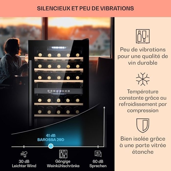 Nombre del producto Vinoteca Klarstein Barossa 29 Duo – 29 botellas – 80 L – 2 zonas – 5 a 22 °C – LED – Negra